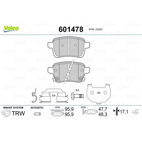 Jeu de quatre plaquettes de frein à disque VALEO